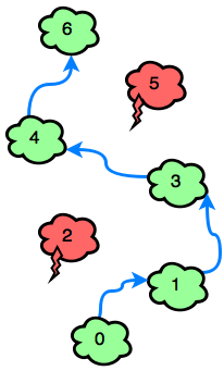 For each game, Emma will get an array of clouds numbered if they are safe or if they must be avoided. For example, indexed from . The number on each cloud is its index in the list so she must avoid the clouds at indexes and . She could follow the following two paths: or . The first path takes jumps while the second takes .