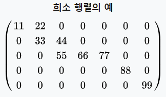 - 직역하면 희소 데이터라는 뜻이고, 행렬에 위치한 값들이 0인 값이 많이 존재함
