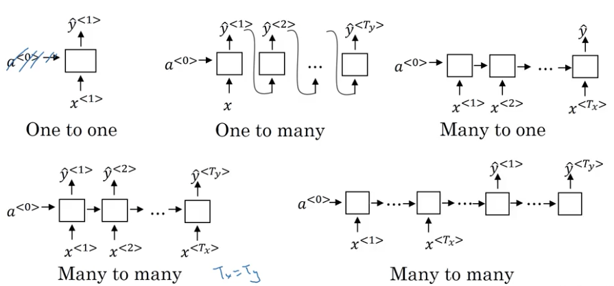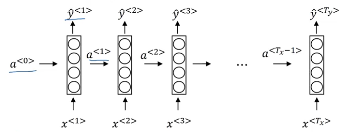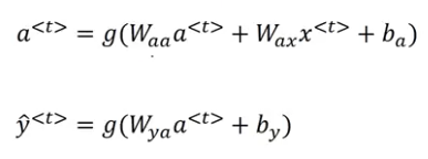 forward propagation의 과정은 위와같고, 공식은 아래와같다. 기본적으로 제일처음의 activation함수값(a<0>)은 0으로 설정한다고한다.