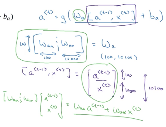 이렇게 해야지만 [Wax|Waa] * [a<t-1> , x<t>] 가 Waa * a<t-1> + Wax * x<t>와 동일하게된다